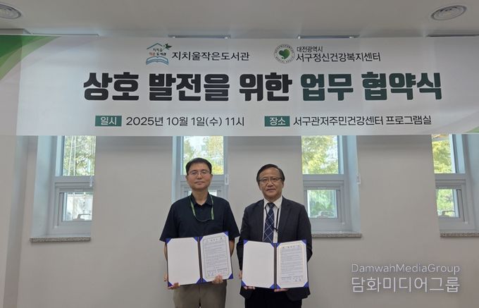 시민행정신문 강갑수 기자 | 대전 서구 평생학습원 지치울작은도서관과 서구정신건강복지센터는 상호 협력과 공동 발전을 위한 업무협약을 체결했다.