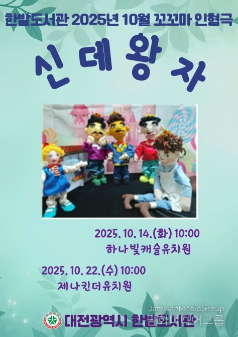시민행정신문 강갑수 기자 | 대전 한밭도서관은 어린이의 감정 표현과 상상력을 키우기 위해 유치원을 직접 찾아가는 독서문화 프로그램으로 손인형극 ‘신데왕자’를 공연한다.