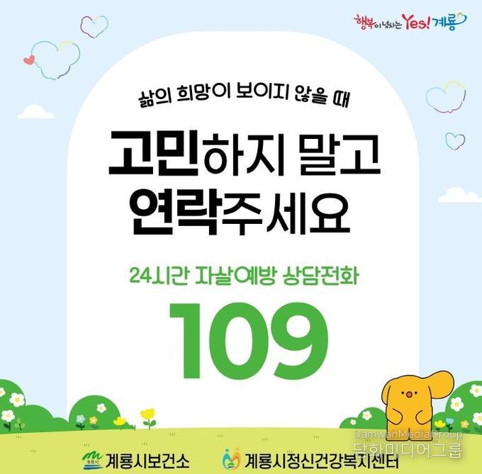 시민행정신문 기자 | 계룡시는 ‘행복이 넘치는 Yes! 계룡’ 구현을 위해 건강하고 행복한 계룡시를 위한 다양한 자살 예방 사업을 펼치고 있다.