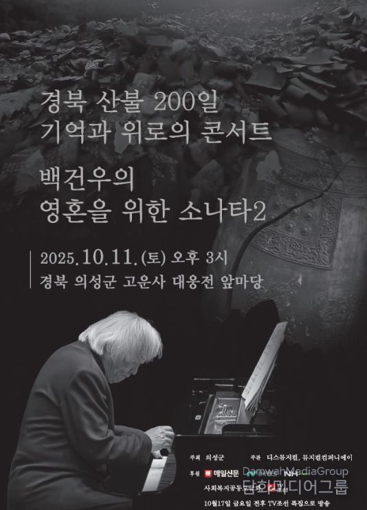 김주수 의성군수는 “이번 공연은 대형산불로 큰 피해를 입은 지역 공동체의 상처를 음악으로 어루만지고자 마련된 자리”라며, “백건우 선생의 피아노 선율을 통해 군민 모두가 희망과 치유의 시간을 함께하길 바란다”고 말했다.