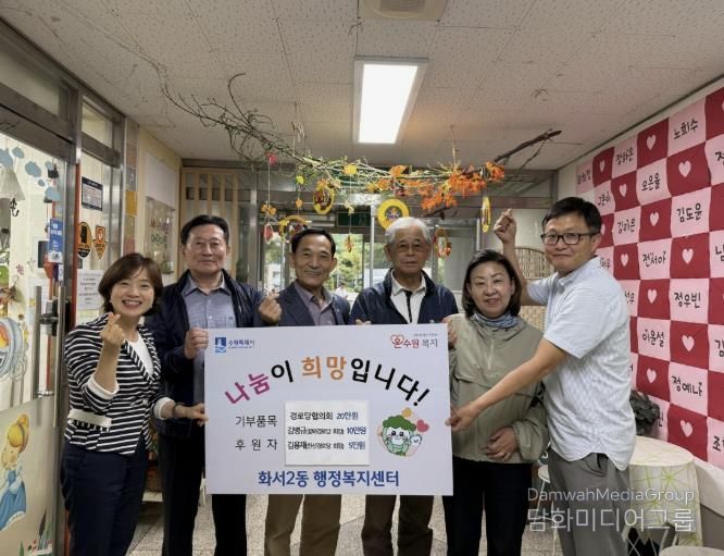 화서2동 지은아 동장은 “경로당 회장님들의 따뜻한 나눔이야말로 지역 공동체 정신을 보여주는 귀감이며, 소중한 성금은 어려운 이웃들에게 잘 전달해 행복한 명절을 맞을 수 있도록 하겠다.”고 감사의 뜻을 전했다.