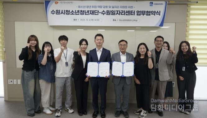 시민행정신문 강갑수 기자 | 수원시청소년청년재단과 수원일자리센터는 10월 2일, 청소년청년의 취업 역량 강화와 일자리 지원을 위한 업무협약(MOU)을 체결했다.
