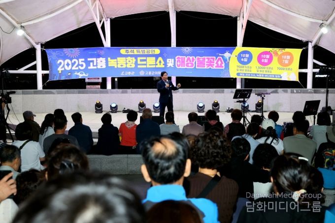 시민행정신문 강갑수 기자 | 고흥군은 지난 추석 연휴 기간 녹동항 바다정원 일원에서 진행한 ‘추석맞이 녹동항 드론쇼 특별공연’에 약 5만 5천여 명의 관람객이 방문한 가운데 성황리에 마무리됐다고 10일 밝혔다.