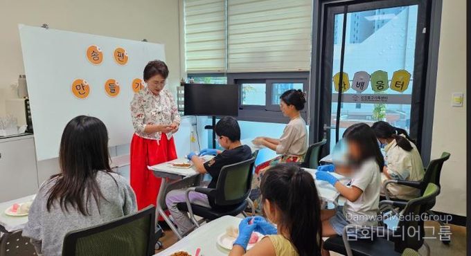 이번 체험은 박미희 센터장이 아이들에게 직접 송편의 의미와 만드는 방법을 설명하며 소통하는 시간을 가졌다.