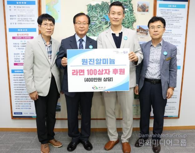 시민행정신문 강갑수 기자 | ㈜원진알미늄이 완주군에 라면 100상자(환가액 400만 원 상당)를 전달했다.