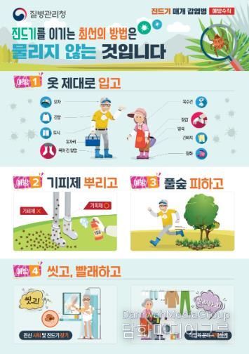 진드기 매개 감염병을 예방하는 가장 효과적인 방법은 진드기에 물리지 않는 것이다.