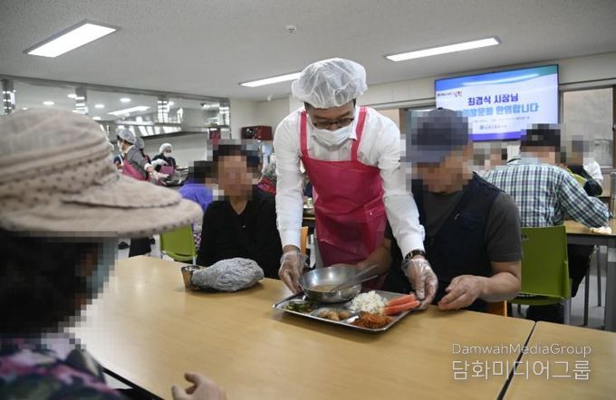 시민행정신문 강갑수 기자 | 최경식 남원시장이 지난 10일 기능보강이 완료된 남원사회복지관 경로식당을 방문해 배식 봉사를 진행하며 어르신들과 소통하는 시간을 보냈다.