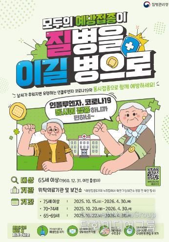 65세 이상 어르신의 경우 연령대별로 접종 시기가 구분되는데 ▲75세 이상은 10월 15일 ▲70~74세는 10월 20일 ▲65~69세는 10월 22일부터 무료 접종이 가능하다.