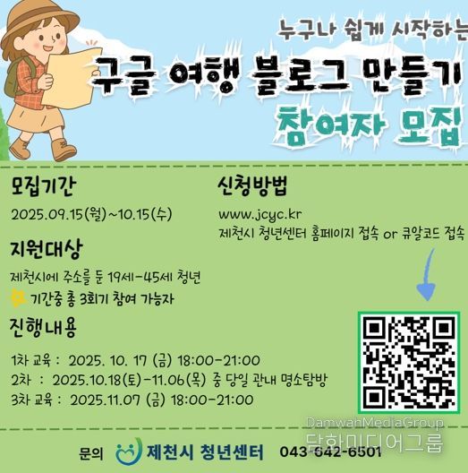 제천시 청년센터 관계자는 “이번 영어 여행블로그 만들기 프로그램을 통해 제천 관광 홍보의 다양성을 확대하고, 청년들의 콘텐츠 제작 역량을 강화해 청년 창업 활성화에 기여하겠다”고 밝혔다.
