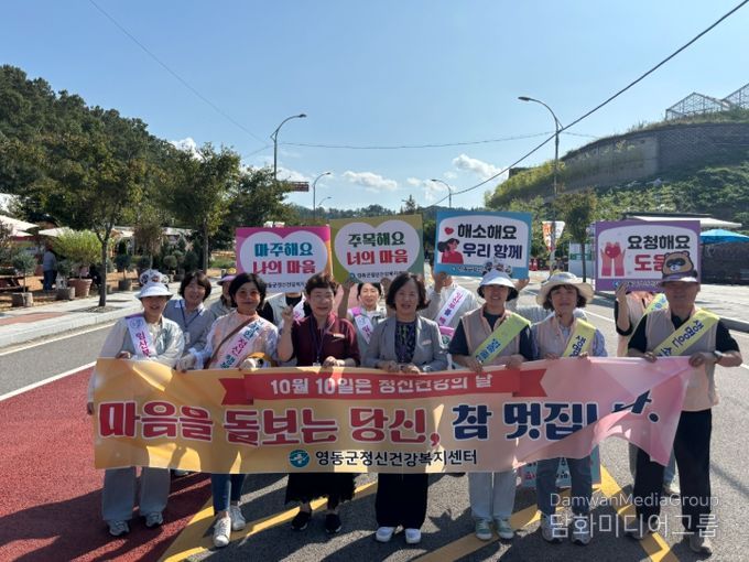 이번 캠페인은 10월 10일 정신건강의 날을 맞이하여 자살 예방에 대한 사회적 관심과 공감대를 확산하기 위해 마련됐으며, 영동군정신건강복지센터 직원 등 10여 명이 참여했다.