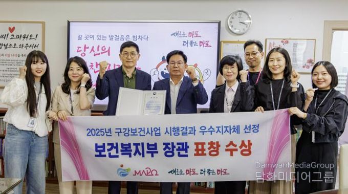 시민행정신문 강갑수 기자 | 마포구는 지난달 26일, 보건복지부와 한국건강증진개발원이 주관한 ‘2025년 지역사회 구강보건사업 성과대회’에서 우수기관으로 선정돼 보건복지부 장관상을 수상했다.