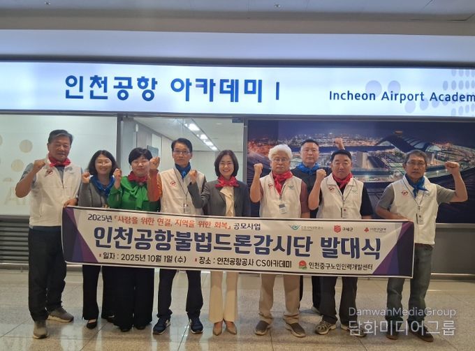 시민행정신문 강갑수 기자 | 인천중구노인인력개발센터는 올해 10월부터 ‘인천공항불법드론감시단’이 본격적인 운영에 들어갔다고 13일 밝혔다.