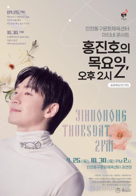 시민행정신문 강갑수 기자 | 인천 동구문화체육센터는 마티네 콘서트 '목요일, 오후 2시' 두 번째 무대를 오는 30일 오후 2시 동구문화체육센터 공연장에서 개최한다고 밝혔다.