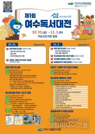 시민행정신문 강갑수 기자 | 여수시는 오는 10월 31일부터 11월 1일까지 이틀간 이순신도서관 일원에서 ‘제1회 여수독서대전’을 개최한다.