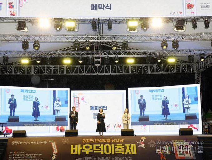 12일 열린 폐막식은 김보라 시장의 폐회선언과 함께 밴드날다의 에너지 넘치는 공연, 안성시 홍보대사 안성훈의 특별 무대로 열기를 더했다. 이어 드론이 빚어낸 화려한 빛의 향연이 하늘을 수놓으며 관람객들의 박수와 환호 속에 감동적인 피날레를 장식했다.