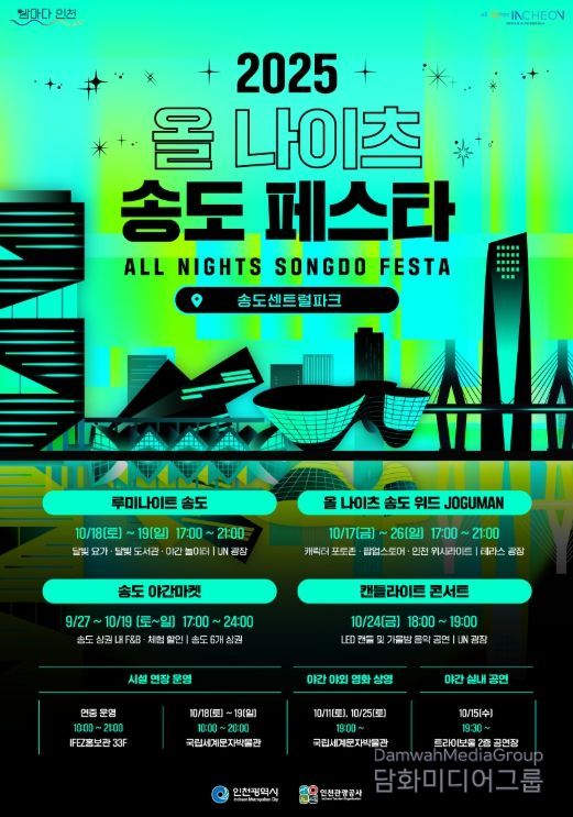 시민행정신문 강갑수 기자 | 인천광역시와 인천관광공사는 오는 10월 17일부터 26일까지 송도센트럴파크 일대에서 '2025 올 나이츠 송도 페스타'를 개최한다고 밝혔다.