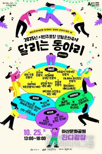 시민행정신문 강갑수 기자 | (재)아산문화재단은 오는 10월 25일 13시부터 18시까지 아산문화공원 잔디광장에서 시민이 주체가 되어 즐기는 ‘2025년 시민주도형 생활문화 축제 '달리는 동아리'’를 개최한다.
