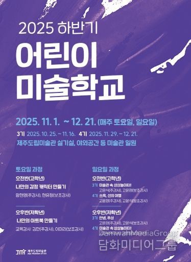시민행정신문 기자 | 제주특별자치도 도립미술관(관장 이종후)은 10월 25일부터 12월 21일까지 ‘2025 어린이 미술학교’ 하반기 교육프로그램을 운영한다.