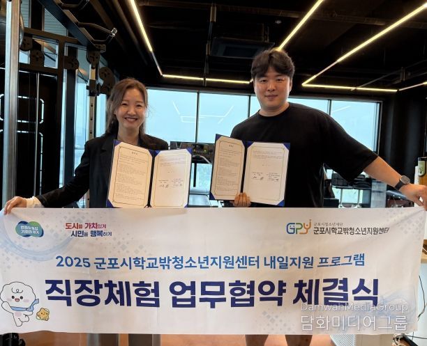 시민행정신문 강갑수 기자 | 군포시청소년재단(대표이사 김덕희), 군포시학교밖청소년지원센터(센터장 강연미)는 조직 운영 및 마케팅에 관심 있는 학교 밖 청소년의 진로 탐색과 현장 경험 확대를 위해 내셔널국가대표PT센터(대표 김택용)와 직장체험 업무협약을 체결했다고 밝혔다.