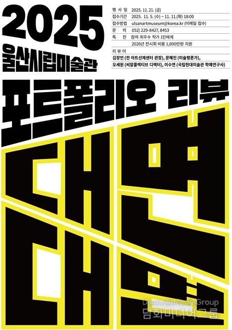시민행정신문 강갑수 기자 | 울산시립미술관이 지역 청년 예술가들의 성장을 지원하기 위해 ‘2025 울산시립미술관 지역신진작가 실적자료집 비평(포트폴리오 리뷰) – 대면_대면 2025(Face_to_Face_to_Face 2025)’ 참여 작가를 공개 모집한다.