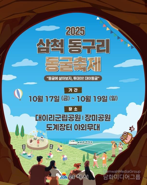 시민행정신문 기자 | 삼척 동구리 동굴축제가 10월 17~19일 대이리군립공원(대이동굴)·삼척장미공원·도계장터 야외무대에서 동시에 열린다. ‘동굴에 살아보자, 투데이! 대이동굴’을 슬로건으로 한 올해 축제는 가족 공연과 실감형 동굴체험, 도심·생활권 무대를 셔틀망으로 연결하는 분산형 운영으로 하루 동선을 완성했다.