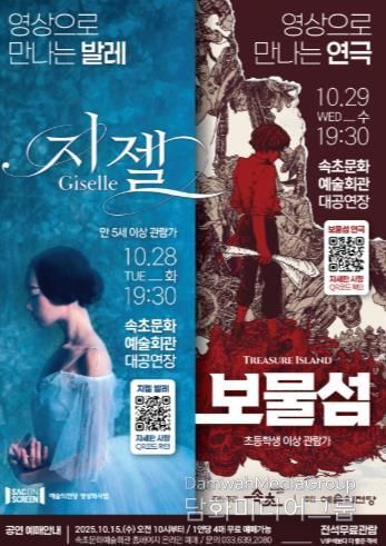 상영작은 △발레 ‘지젤’(10월 28일 19시 30분) △연극 ‘보물섬’(10월 29일 19시 30분)이다.