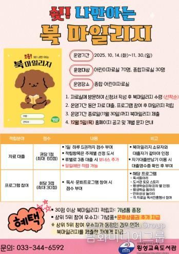 권정애 관장은 “이번 북 마일리지 프로그램을 통해 주민들이 책을 더욱 친근하게 접하고, 아이들부터 어르신까지 책 읽는 기쁨을 나누는 계기가 되길 기대한다”라고 전했다.