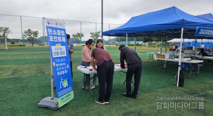 시민행정신문 강갑수 기자 | 거제시는 10월 13일 하청스포츠파크 운동장에서 개최된 ‘제2회 거제수산업경영인 한마음대회’ 행사장에서 ‘찾아가는 탄소중립 홍보부스’를 운영하며 수산인들을 대상으로 탄소중립 실천 참여를 독려했다.
