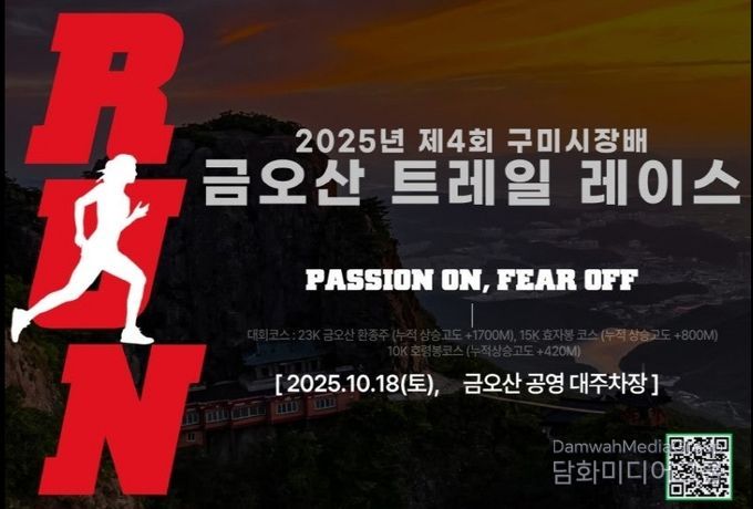 대회는 오전 7시 30분 금오산 대주차장에서 개회식을 시작으로 △23km 금오산 환종주코스(형곡전망대-도수령-현월봉-환경연수원-금오산공영대주차장) △15KM 효자봉 코스(형곡전망대-도수령-금오산공영대주차장)△10KM 효령봉코스(형곡전망대-금오랜드-금오산공영대주차장) 세 구간으로 진행된다. 울창한 숲과 계곡을 따라 이어지는 코스마다 가을 정취가 물씬 풍기며, 참가자들은 자연이 빚은 풍광 속에서 체력과 인내를 겨룰 예정이다.