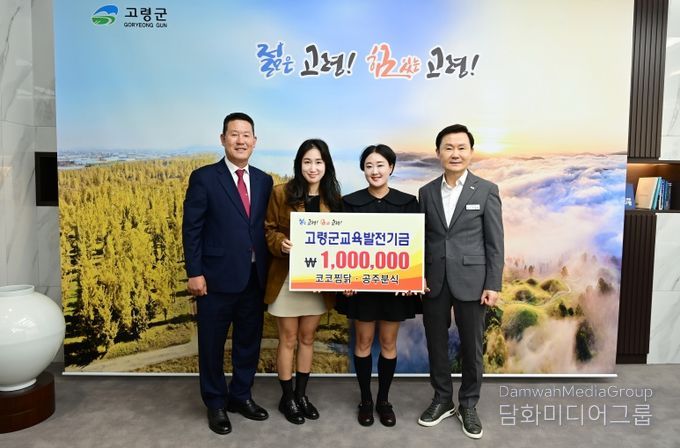 고령군(군수 이남철)은 지역교육 활성화를 위하여 선뜻 큰 금액을 기탁해주신 코코찜닭 김현진 대표님과 공주분식 이선희 대표님께 고마움을 표하고 “어려운 경제여건 속에서도 교육발전을 위해 기탁해주셔서 깊이 감사드린다.”며 “앞으로 기부문화가 더욱 활성화되어 서로 돕는 따뜻한 지역 분위기를 조성하고, 모두가 함께 성장할 수 있는 고령을 만들어 나가도록 노력하겠다.”고 전했다.