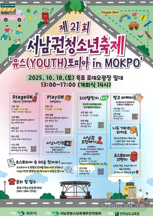 시민행정신문 강갑수 기자 | 제21회 서남권청소년축제가 ‘유스(YOUTH)토피아 in MOKPO’를 주제로 오는 10월 18일(토) 오후 1시부터 5시까지 목포 로데오광장 일대에서 열린다.
