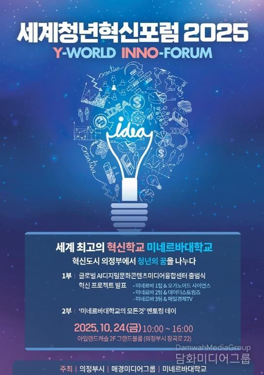 시민행정신문 강갑수 기자 | 의정부시는 10월 24일 오전 10시, 아일랜드캐슬 2층 그랜드볼룸에서 ‘세계청년혁신포럼 2025(Y-WORLD INNO-FORUM)’를 개최한다.