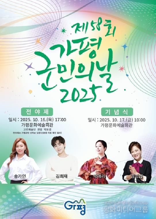 시민행정신문 기자 | 가평군은 오는 16일 오후 5시, 새롭게 리모델링을 마친 가평문화예술회관에서 ‘제58회 가평군민의 날 전야제’를 개최한다. 이번 행사는 ‘다시, 가평으로’를 슬로건으로 내세워 수해 극복과 지역 재도약을 기원하며 군민 화합의 의미를 담아 열린다.