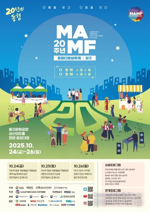 시민행정신문 기자 | 경상남도는 10월 24일부터 26일까지 3일간 창원 용지문화공원 일원에서 올해로 20회를 맞는 국내 최대 규모의 문화다양성 축제 ‘2025 맘프(MAMF, Migrant’s Arirang Multicultural Festival)’를 개최한다고 밝혔다.