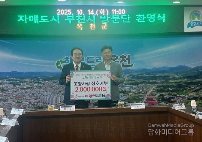 시민행정신문 강갑수 기자 | 14일, 조용익 부천시장을 비롯한 부천시 충청권 정책현장 벤치마킹 방문단 24명이 ‘향수의 고장’ 옥천군을 방문했다. 이번 만남은 2002년 자매결연을 체결한 두 지역 간의 우호 증진과 교류 확대를 위한 자리로 마련됐다. 이날 옥천군과 부천시는 각 200만 원의 고향사랑기부금을 상호 기탁하며 두 지역의 발전을 함께 응원했다.