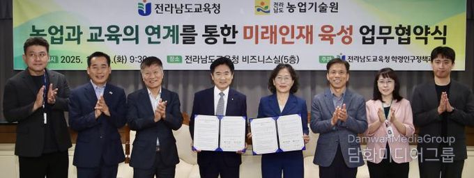 시민행정신문 강갑수 기자 | 전라남도교육청은 10월 14일 청사 5층 비지니스실에서 전라남도 농업기술원(원장 김행란)과 ‘농업과 교육의 연계를 통한 미래인재 육성 업무협약’을 체결했다.