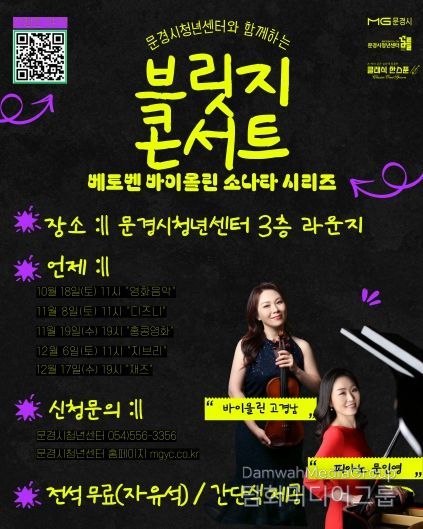시민행정신문 기자 | 문경시청년센터는 오는 10월부터 12월까지 문경시청년센터 3층 라운지에서 클래식을 주제로 한‘브릿지 콘서트’를 연다.