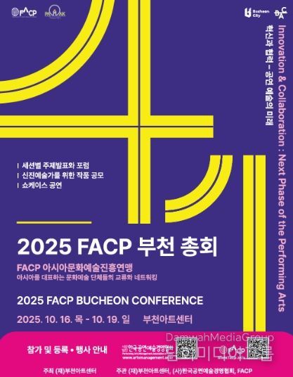 시민행정신문 기자 | (재)부천아트센터가 주최하고, (재)부천아트센터·아시아문화진흥연맹(FACP)·(사)한국공연예술경영협회가 공동 주관하는‘제41회 2025 FACP 부천 총회(Federation for Asian Cultural Promotion, 이하 FACP)’가 10월 16일부터 19일까지 4일간 부천아트센터 일대에서 개최된다.