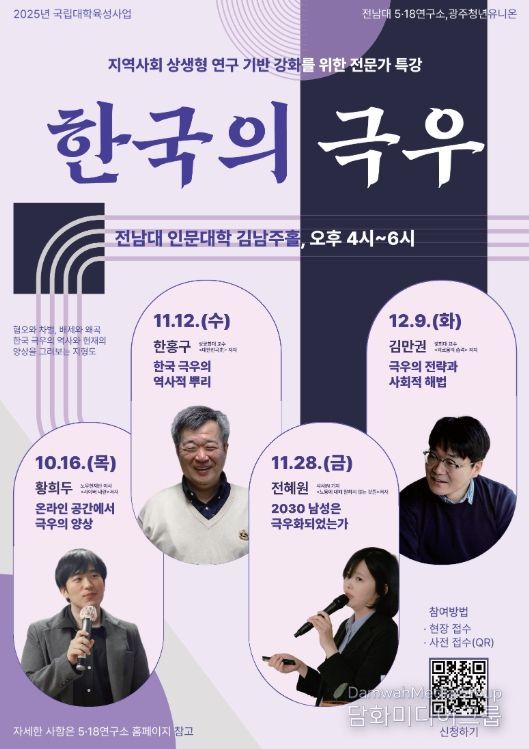 한편, ‘한국의 극우’ 연속 강연은 2025년 국립대학 육성사업의 일환으로 전남대학교 5·18연구소와 광주청년유니온이 공동 주최한다.
