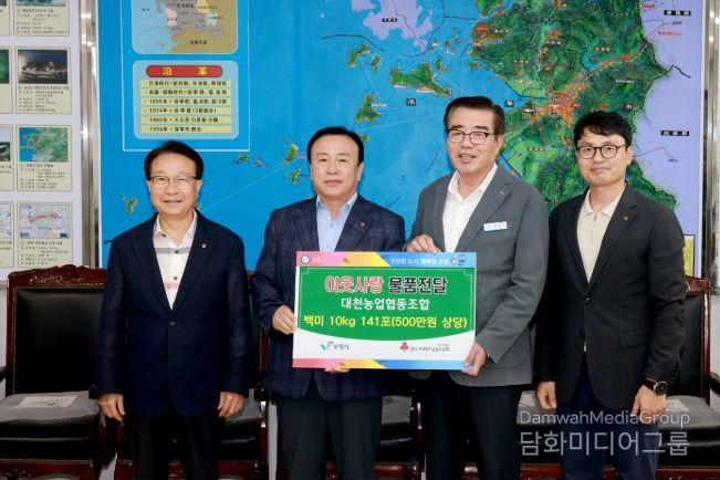김영관 대천농협 조합장은 “청사 준공을 축하해주신 분들의 마음을 지역의 어려운 이웃들과 나누고자 기부를 결정했다”며 “앞으로도 지역민과 함께 상생하며 나눔 문화를 확산시켜 나가겠다”고 말했다.
