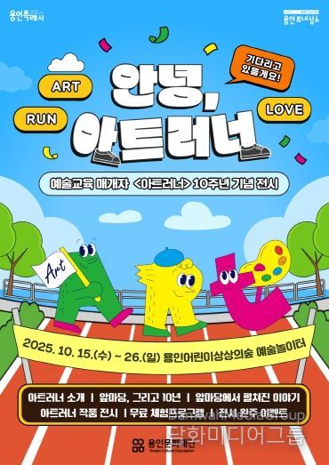 시민행정신문 기자 | (재)용인문화재단은 예술교육 매개자 ‘아트러너(Art Runner)’ 사업 10주년을 맞아 오는 10월 15일부터 26일까지 용인어린이상상의숲 예술놀이터에서 기념 전시 '안녕, 아트러너'를 개최한다.