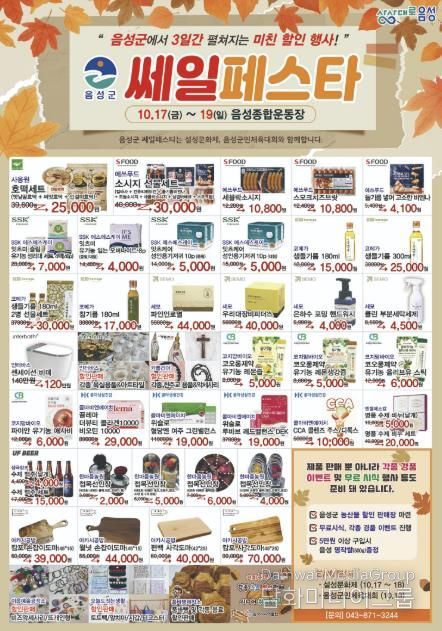 시민행정신문 기자 | 음성군은 이달 17일부터 19일까지 음성종합운동장에서 음성군 쎄일페스타를 개최한다고 밝혔다.