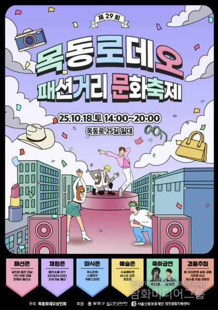 ‘패션존’에서는 이번 축제의 하이라이트인 목동로데오 상점가 의류협찬으로 진행되는 야외 런웨이 패션쇼가 열린다. 구민 모델과 전문 모델이 함께 무대에 올라 패션 트렌드를 선보일 예정이며, 유가영·성유빈·박미경 등 초청가수 공연도 이어져 흥겨운 분위기를 더한다.