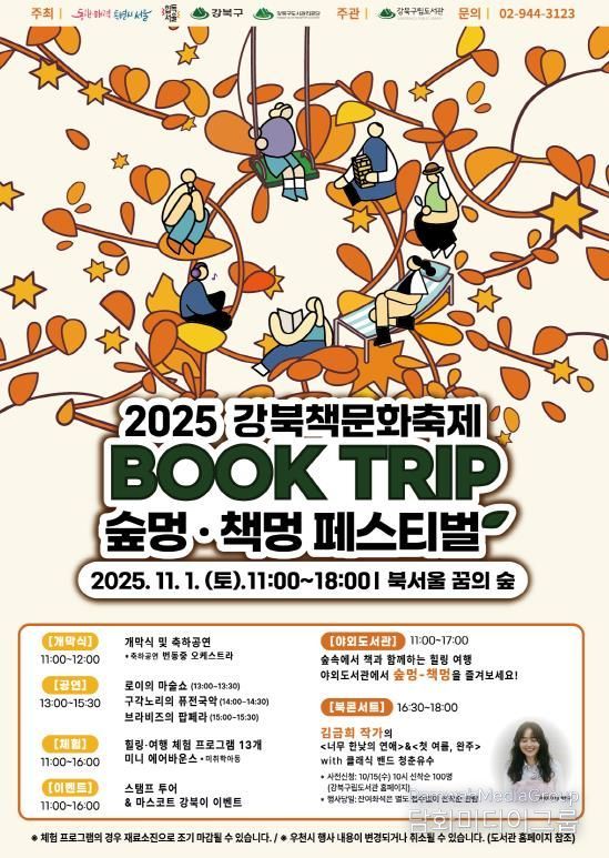 시민행정신문 강갑수 기자 | 서울 강북구는 오는 11월 1일 북서울꿈의숲에서 ‘2025 강북 책문화 축제 강북(book)-트립: 숲멍·책멍 페스티벌'이 개최된다고 밝혔다.
