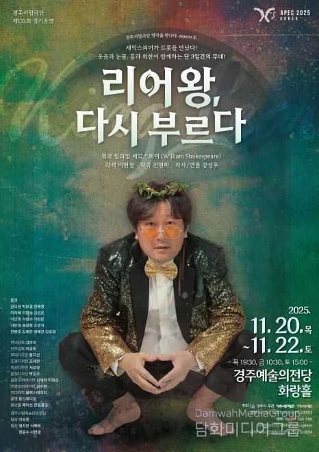 주낙영 경주시장은 “경주시립극단의 명작 무대인 ‘리어왕, 다시 부르다’는 고전의 깊이와 현대 감성이 어우러진 수준 높은 공연이 될 것”이라며, “시민 여러분이 연극의 생동감과 현장감을 만끽하며, 감동의 시간을 보내시길 바란다”고 말했다.