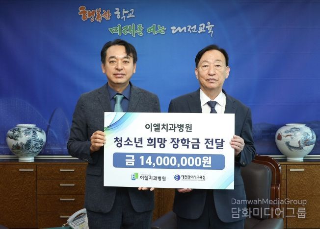시민행정신문 기자 | 대전시교육청은 10월 15일 이엘치과병원으로부터 학생장학금 1,400만원을 전달받았다고 밝혔다.
