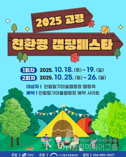 시민행정신문 기자 | 지역과 미래를 배려하는 친환경 캠핑 문화 확산을 위해 마련된 ‘2025 고령 캠핑 페스타’가 오는 10월 18일부터 19일, 10월 25일부터 26일 두 차례에 걸쳐 안림딸기마을캠핑장에서 열린다.
