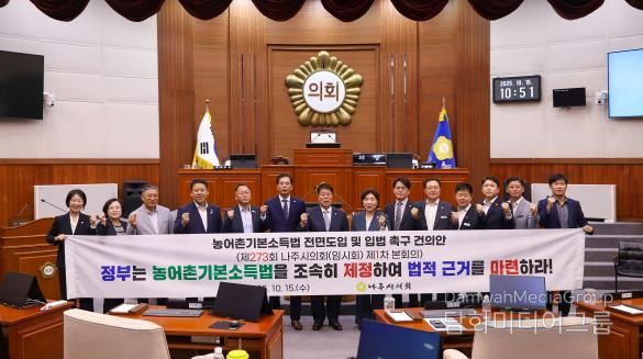 시민행정신문 강갑수 기자 | 나주시의회는 15일 제273회 임시회 제1차 본회의를 열고 ‘농어촌기본소득법 전면도입 및 입법 촉구 건의안’을 채택했다.