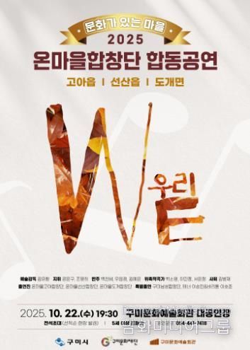 시민행정신문 기자 | 구미문화재단은 ‘문화가 있는 마을’ 사업의 일환으로 운영 중인 온마을합창단의 합동공연을 오는 10월 22일 오후 7시 30분 구미문화예술회관 대공연장에서 개최한다고 밝혔다.