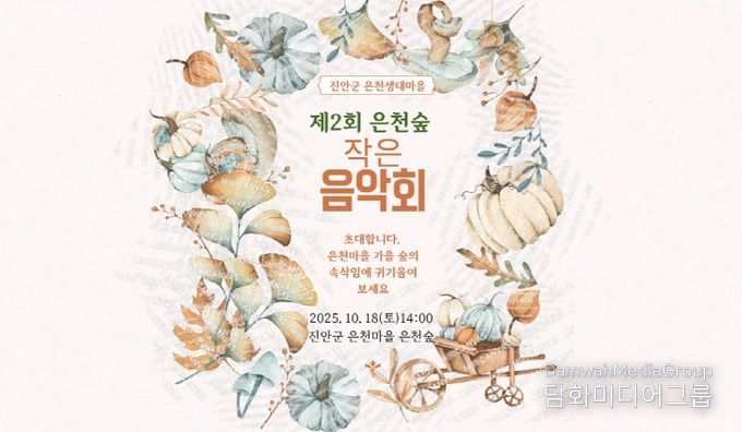 시민행정신문 강갑수 기자 | 진안군은 오는 18일 오후 2시~4시까지 은천생태마을 숲에서 ‘두 번째 은천숲 작은 음악회’가 열린다고 밝혔다.